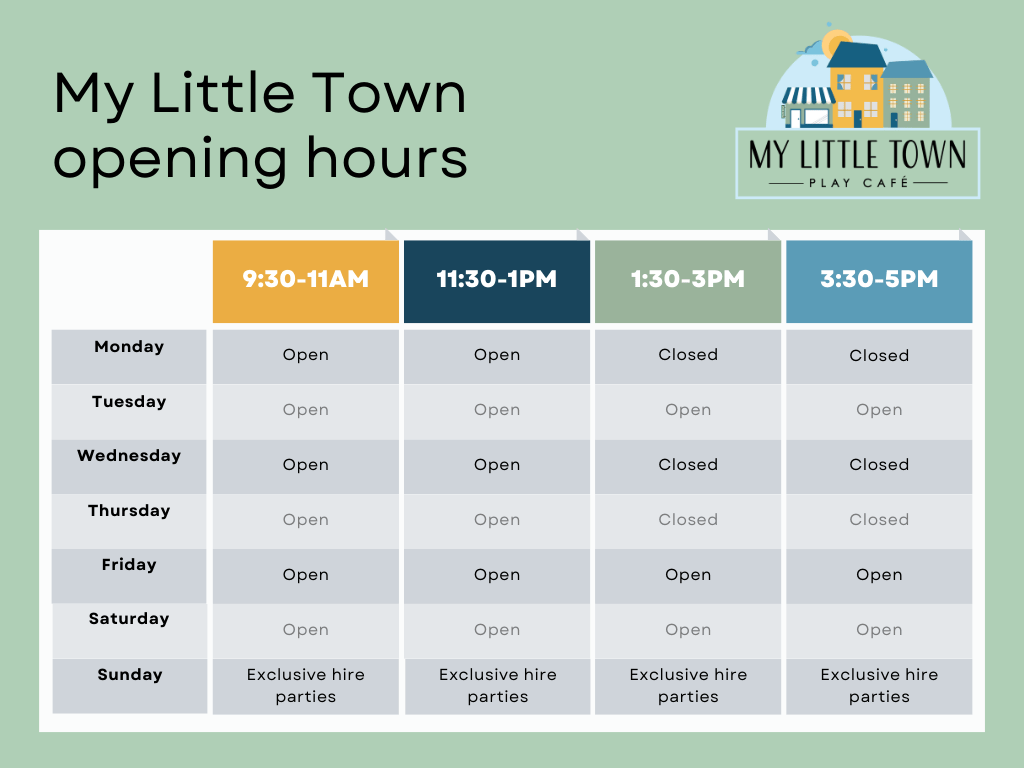 To enable the best play experience, our sessions are 90 minutes long. We then have a short break between sessions, so we can reset the play town ready for our next group of explorers.